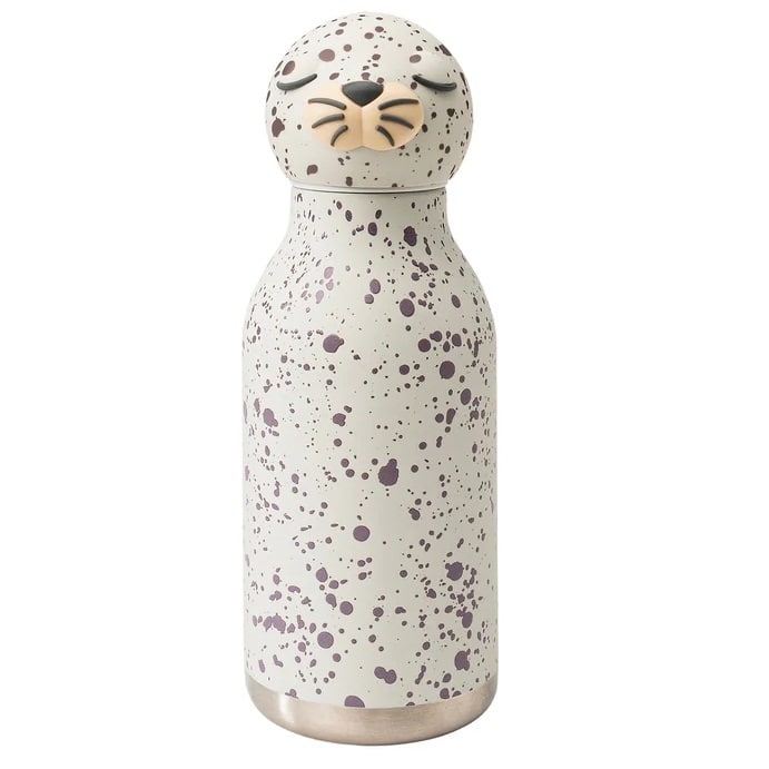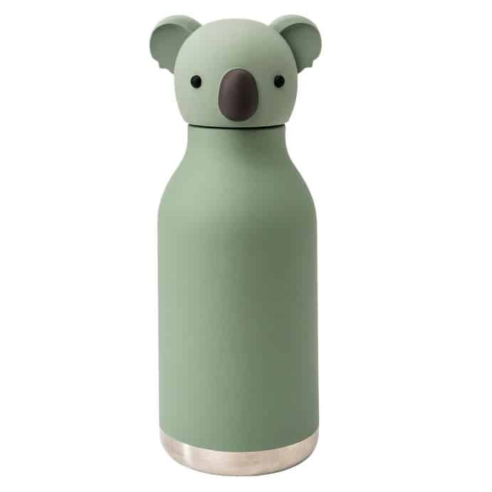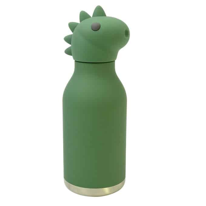 De fles is gemaakt van hoogwaardig roestvrijstaal (RVS) en heeft een zachte siliconen buitenkant. Daardoor ligt hij comfortabel in kleine handen én kan hij tegen een stootje. Bovendien is de fles:
