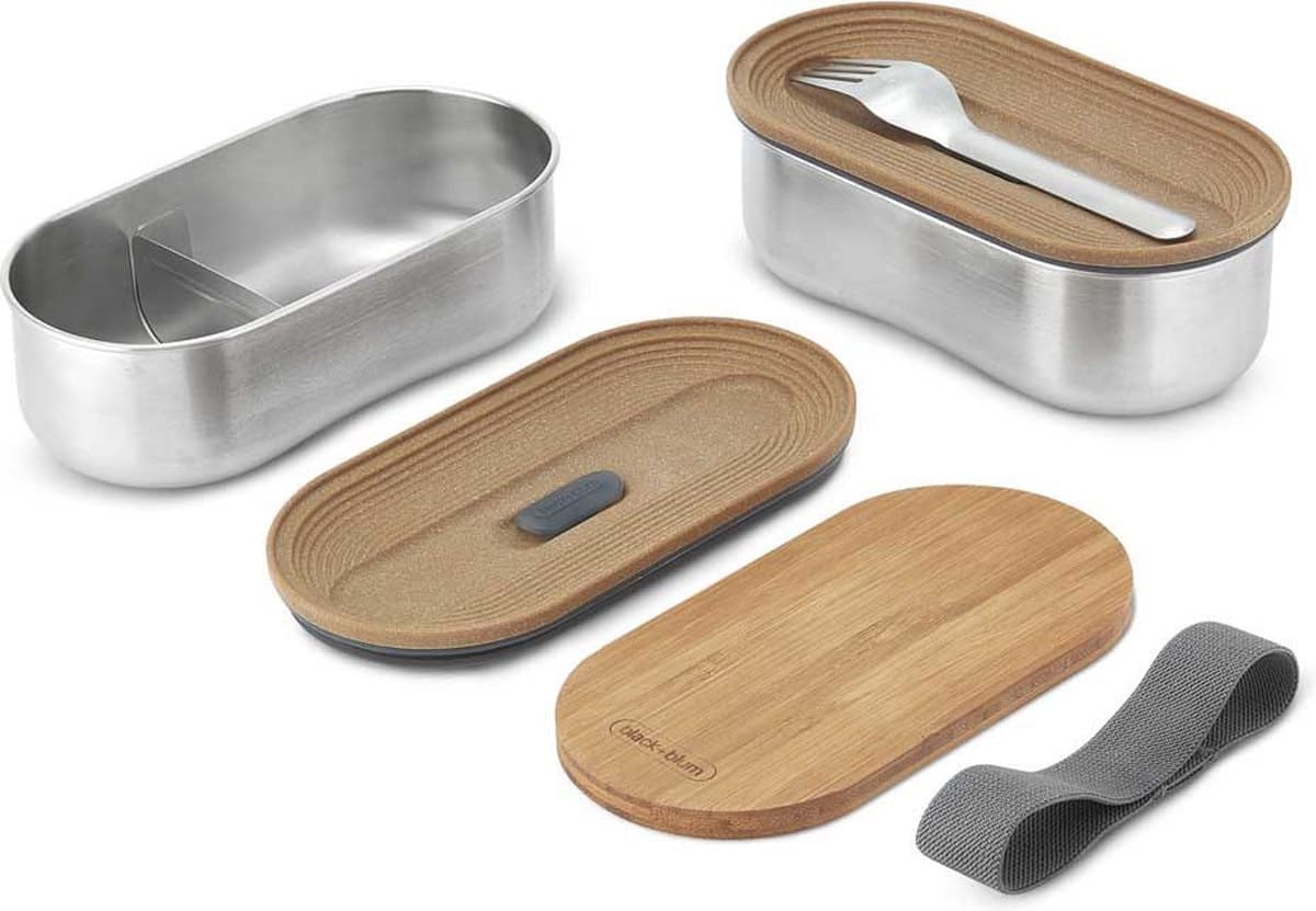 Slim ontwerp: Inclusief verborgen vork en multifunctioneel bamboe deksel/snijplank.