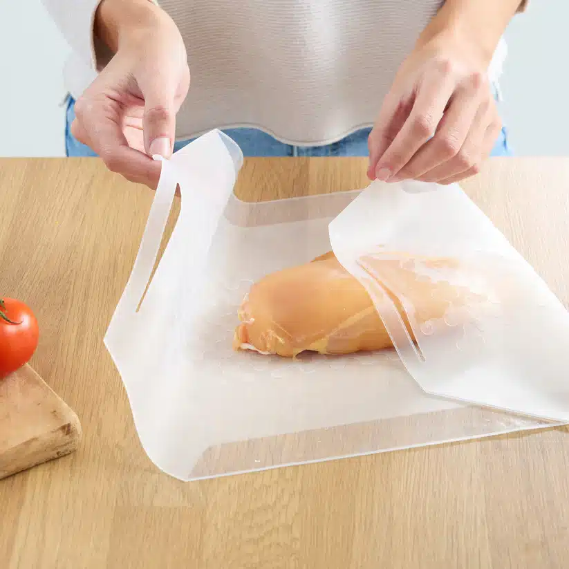 Deze flexibele silicone food wraps vormen zich perfect naar elk product en voorkomen morsen. De dubbele sluiting zorgt voor een luchtdichte afsluiting, zodat smaken en versheid optimaal behouden blijven.
