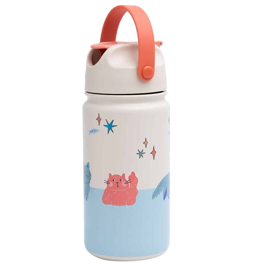 The Cotton Cloud rvs drinkfles kind met rietje heeft een formaat van 420ml. De perfecte metgezel voor school, kinderopvang of avonturen onderweg. Ontworpen met fantastische prints, houdt deze geïsoleerde fles drankjes heerlijk koud in de zomer en gezellig warm in de winter. Gemaakt van hoogwaardig 18/8 roestvrij staal, duurzaam en 100% lekvrij. De zachte LFGB-siliconen rietje maakt drinken eenvoudig: gewoon zachtjes bijten en drinken.